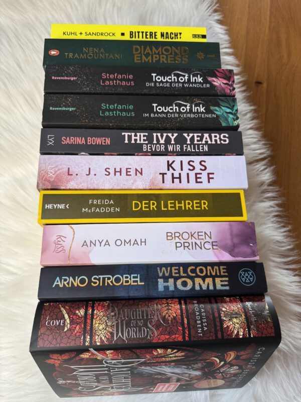 Ein paar neue Bücher, diesen Monat hielt es sich mit den Neuzugängen aber zum Glück doch in Grenzen – und ich hab ein kleines bisschen den SuB verkleinern können 😊
