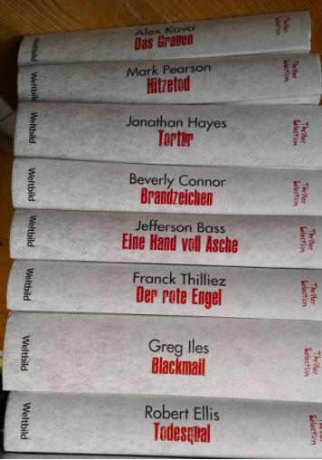 Soo ihr lieben, heute möchte ich gerne ein paar Bücher verkaufen, aus dem Regal meiner Mutter. Die möchte gerne ein bisschen was loswerden, vielleicht habt ihr ja Interesse an dem ein oder anderen Buch? Sie sind eigentlich alle in einem sehr guten Zustand, wurden nur einmal gelesen und standen seitdem im Regal, bzw. verpackt auf dem Dachboden. Es handelt sich ausschließlich um Sonderausgaben von Weltbild, alle gebunden!