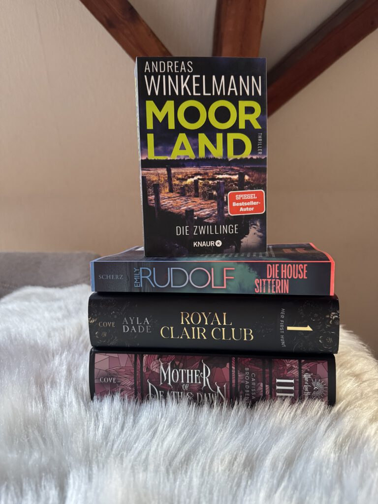 Ein bisschen was frisches fürs Bücherregal und ich bin auf das ein oder andere schon echt gespannt. Emily Rudolfs Bücher wollte ich schon lange mal lesen, auf den neuen Winkelmann freue ich mich auch sehr, auf Ayla Dades Werk sowieso. Aber auch auf den dritten War of Lost Hearts Roman – wobei ich den zweiten erst noch beenden muss 😅