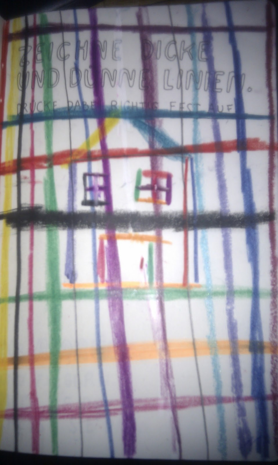 Zeichne dicke und dünne Linien. Drücke dabei richtig fest auf.