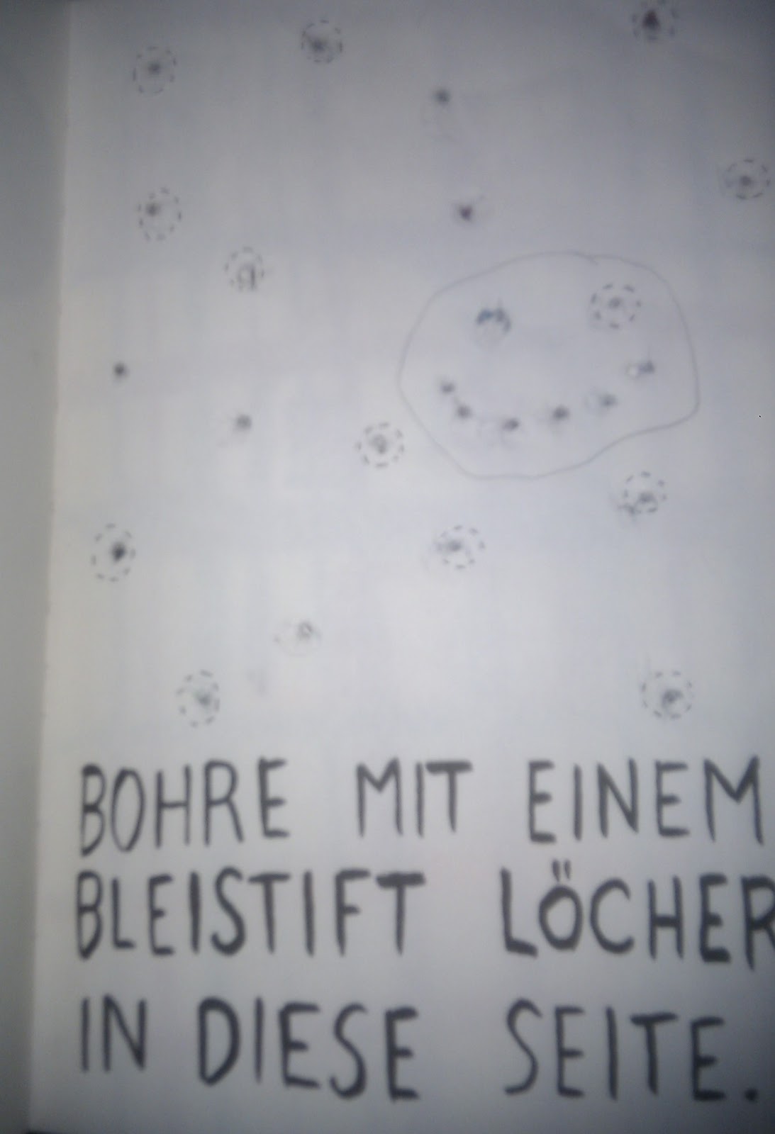 Aufgabe: (linkes Bild) Bohre mit einem Bleistift Löcher in diese Seite.